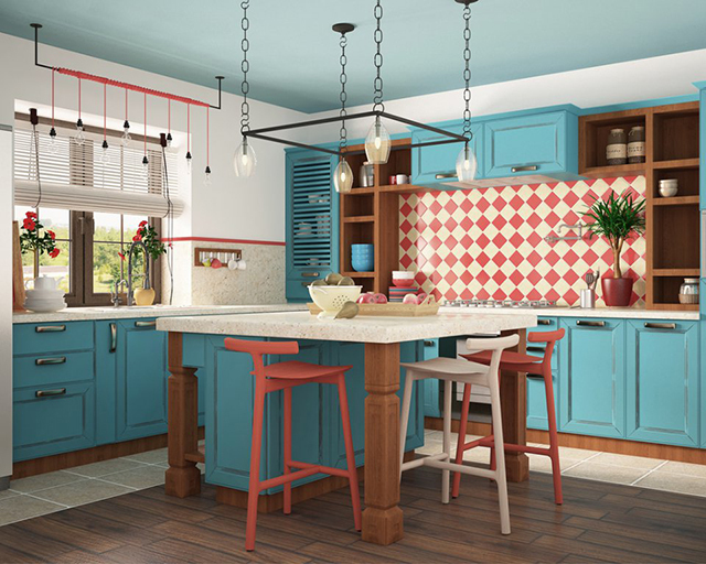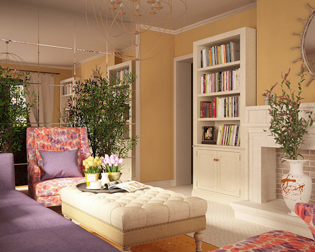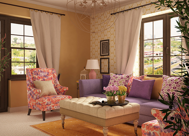 Šī trīsistabu dzīvokļa īpašnieki ir jaunais pāris ar bērnu, kas visu dienu pavada birojā. Tāpēc interjera dizainere Natālija Docenko telpas dizainā izmantojusi dažādas košas krāsas. Interjers ir izstrādāts eklektikas stilā, un tā pamatā ir dažādu laikmetu priekšmetu salikuma, ko savā starpā sasaista krāsa un forma. Katra istaba ir veidota savā krāsu gammā.