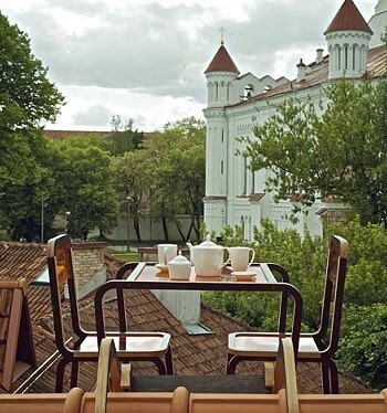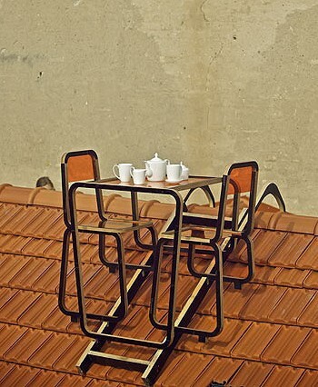 Vasara ir īstais laiks piknikam uz jumta. Lai maltītes ieturēšana uz jumta būtu ērtāka, Viļņas Mākslas akadēmijas absolvente Aine Bunikīte izstrādājusi mēbeļu komplektu slīpajiem jumtiem.