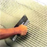 Plāna, vienmērīga līmes kārta jāuzklāj uz virsmas, izmantojot špakteli ar līdzenu malu. Pēc tam tiek uzklāta vēl viena kārta, šoreiz biezāka, taču vietās, kur atradīsies flīze, virsma ar robainās lāpstiņas palīdzību tiek padarīta raupjāka.