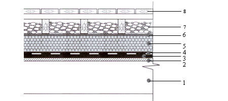 4.att. Siltinātā plakanā ekspluatējamā zaļā jumta detaļa (A-zālienam un ziediem, B - ziediem un ziedošam krūmam)