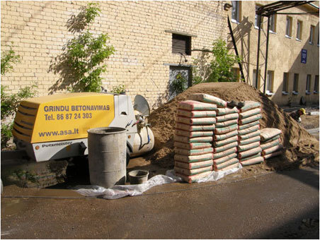 Cementa, grants, ūdens un betona īpašību uzlabojošo vielu maisījums tiek sajaukts maisītājā un ar lokanās caurules palīdzību nogādāts būvlaukumā.