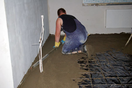 Izmantošanai sadzīvē, kur betona cietība ir līdz 200, izplatītāka ir cementa līdzināšanas metode. Zemāk sniegsim reālu betona grīdas montāžas piemēru.