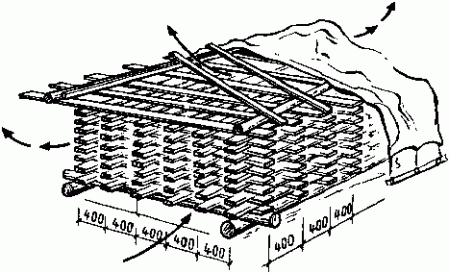 1.att. Zāģmateriālu izvietošana ar vedināšanas atstarpēm, kas nodrošina zāģmateriālu aizsardzību pret mitrumu.