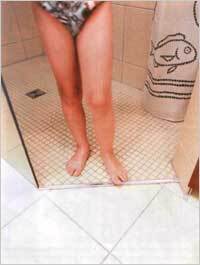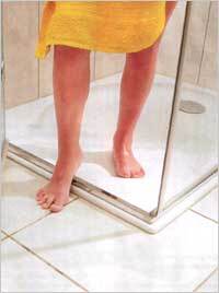 Slīpā grīda dušas kabīnē arī atvieglos tās uzkopšanu.