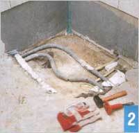 2.Pirms ievietot paliktni grīdas padziļinājumā, ar āmuru un cirtni apstrādājiet virsmas, lai tām nav asas malas.