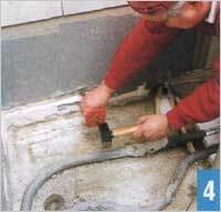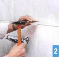2.Urbuma vietās flīžu virskārtu izsitiet ar punktsiti. Sitieni jāveic uzmanīgi, lai nesabojātu emalju.