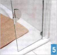 5.Piestipriniet nekustīgās sienas, stiklu nostiprinot virās. Ir svarīgi nepieskrūvēt skrūves pārāk cieši, lai nesaplaisā stikls.